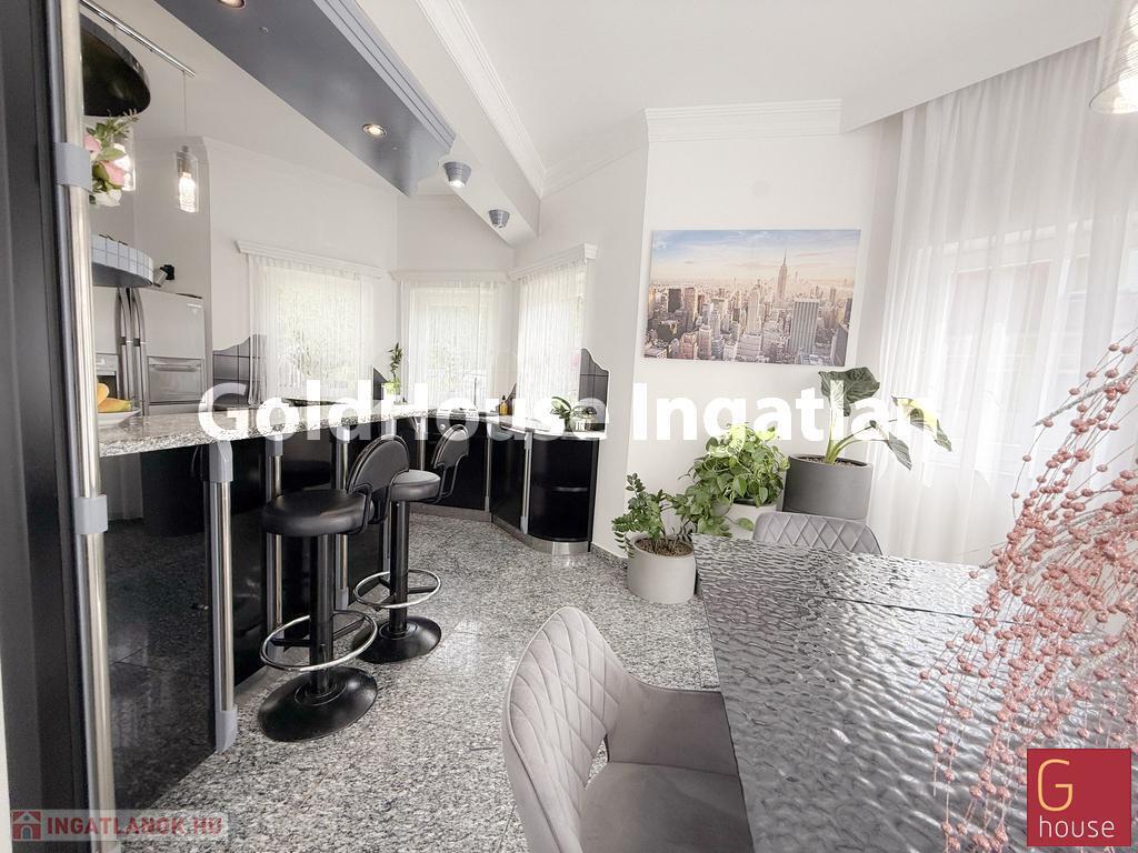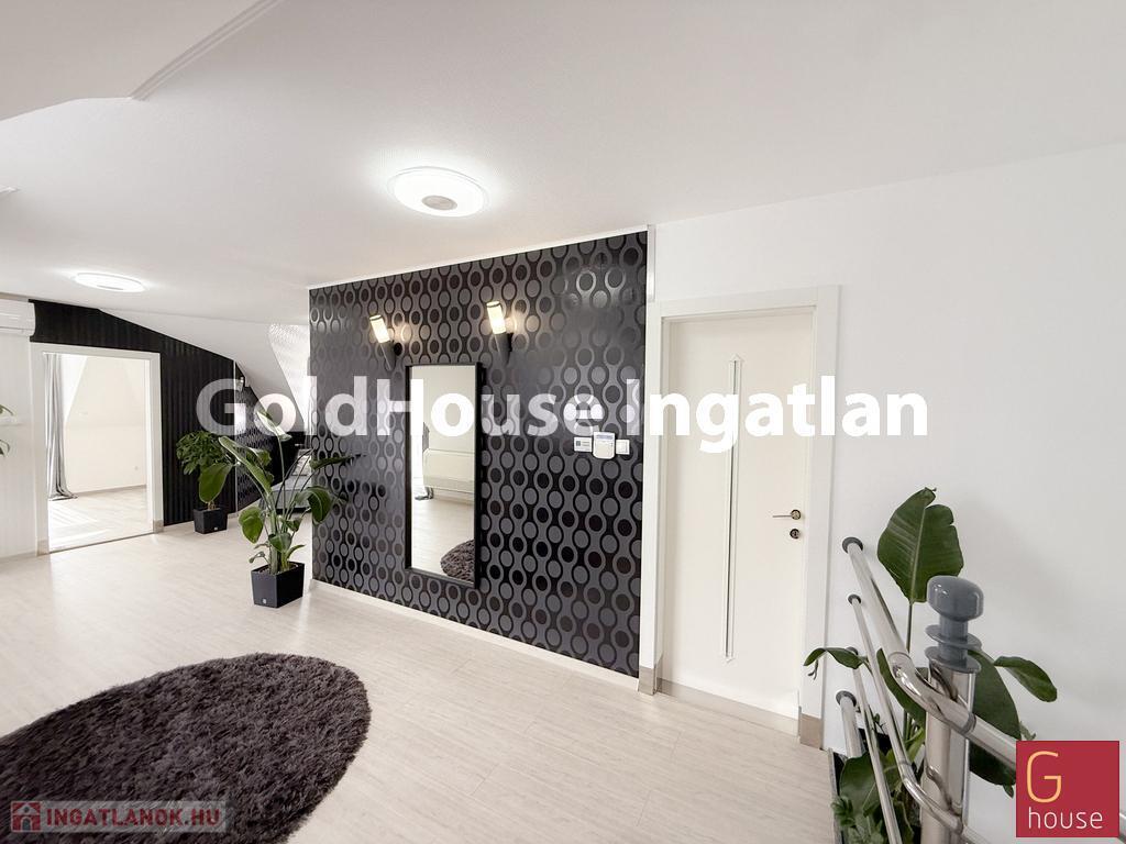 A telek másik oldalán található egy különálló, 255 m²-es apartmanház, amely három külön bejáratú lakásból áll. A földszinten egy ~55 m²-es és egy ~80 m²-es lakás, az emeleten pedig egy tágas, ~120 m²-es otthon került kialakításra. Az ingatlan jelenlegi állapotában is azonnal bérbe adható, így kiváló lehetőséget nyújt passzív jövedelem szerzésére. A lakások közös mérőórás rendszerrel működnek, de igény esetén szétválaszthatók, ezzel is növelve a befektetési rugalmasságot.