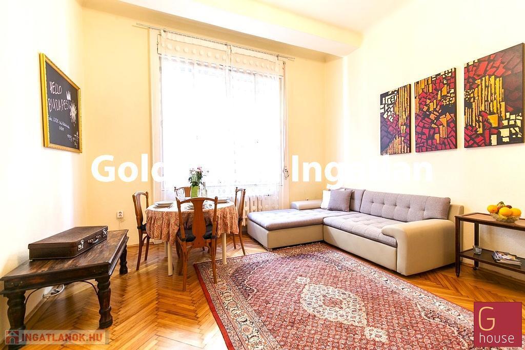 Eladó a VII. kerület belső Erzsébetvárosban, a Rákóczi út – Kazinczy utca sarkán liftes házban, egy második emeleti, 63m2-es, két szobás, azonnal költözhető lakás!